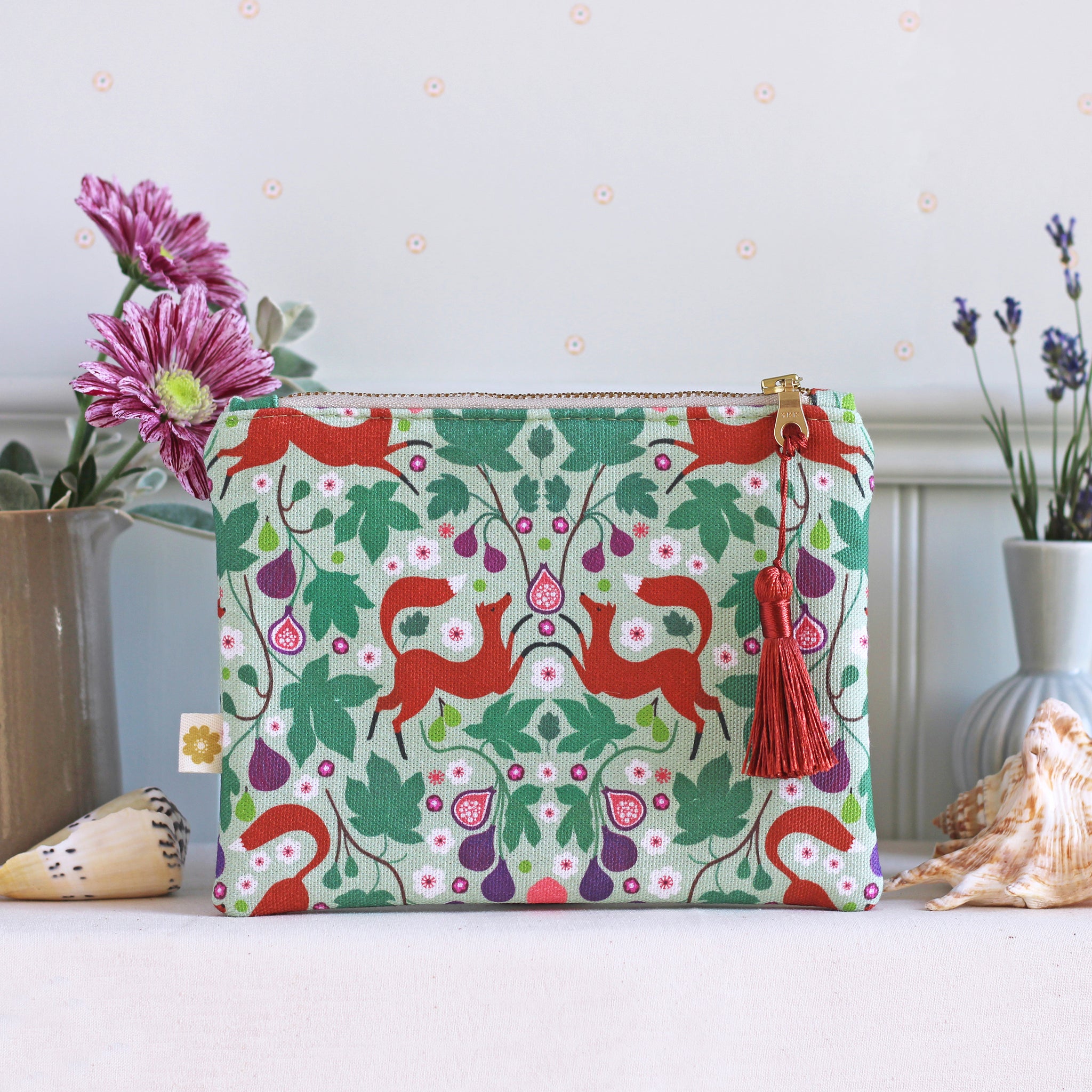 Foxes and Figs Cosmetic Bag – Flat Pouch with Silky Tassel