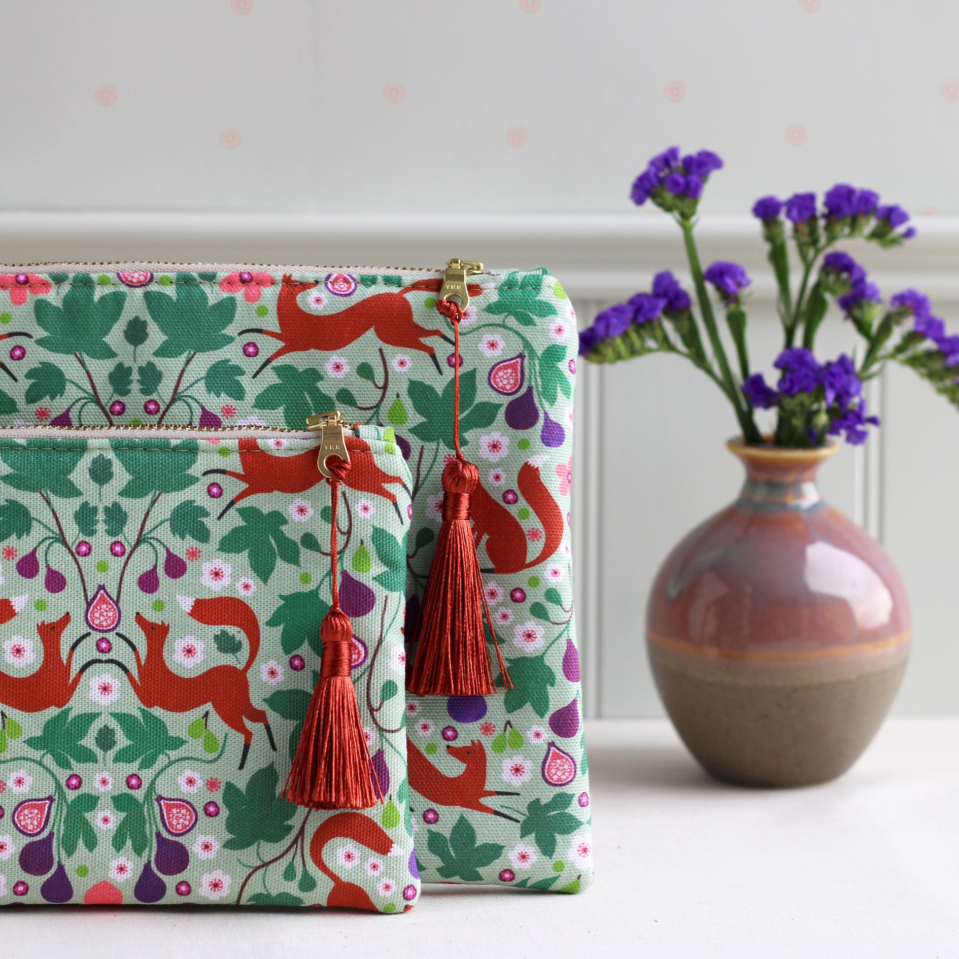 Foxes and Figs Cosmetic Bag – Flat Pouch with Silky Tassel