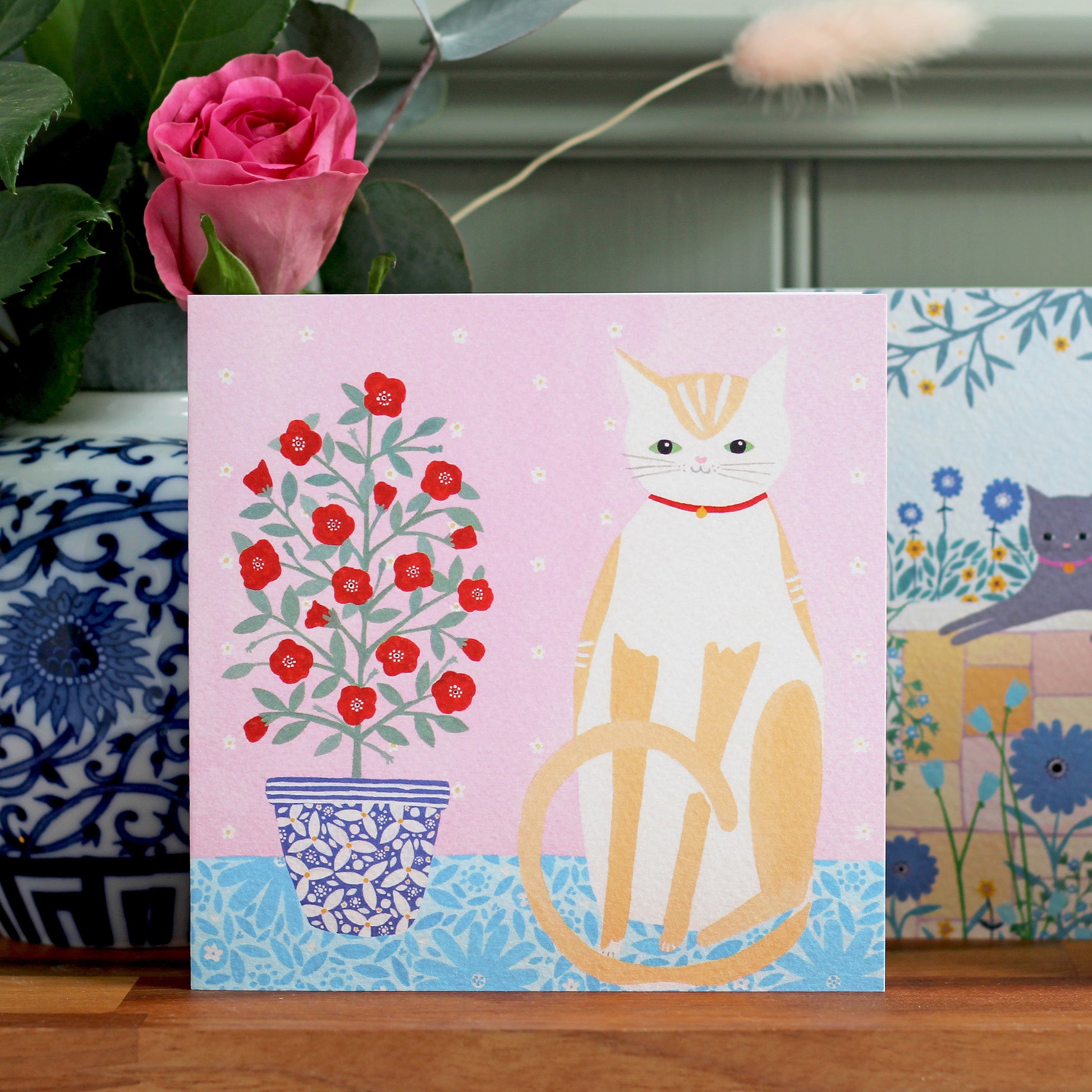 - Designs included are 'Cat With Pot Plant', 'Cat On Wall', 'Dusty' and 'Three Vases'.