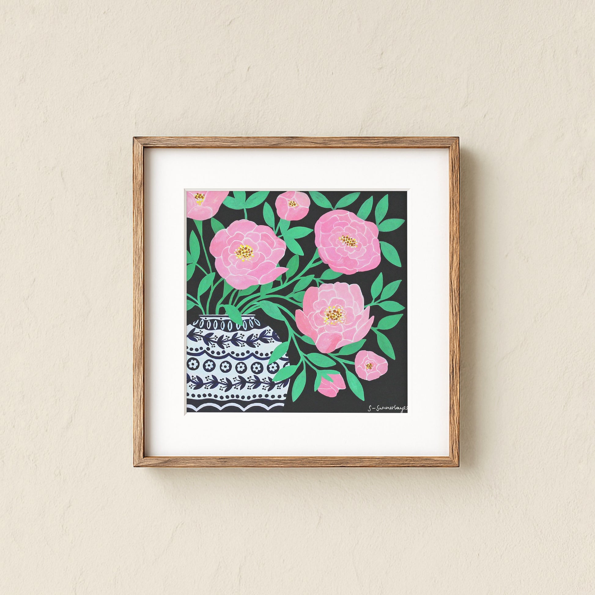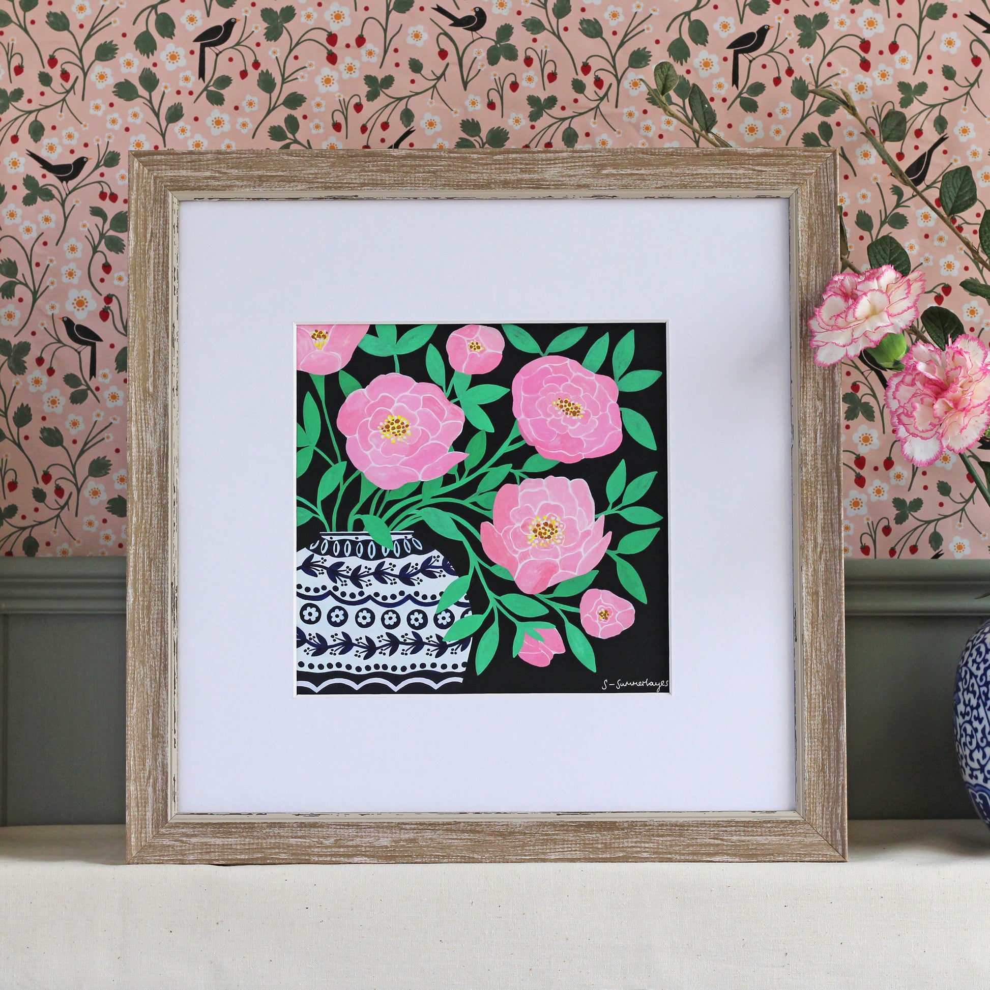 Museum-quality giclée print taken from my original gouache painting. Featuring soft, romantic pink peonies in fresh, contemporary tones, this floral artwork brings elegance, light and gentle colour to your home.